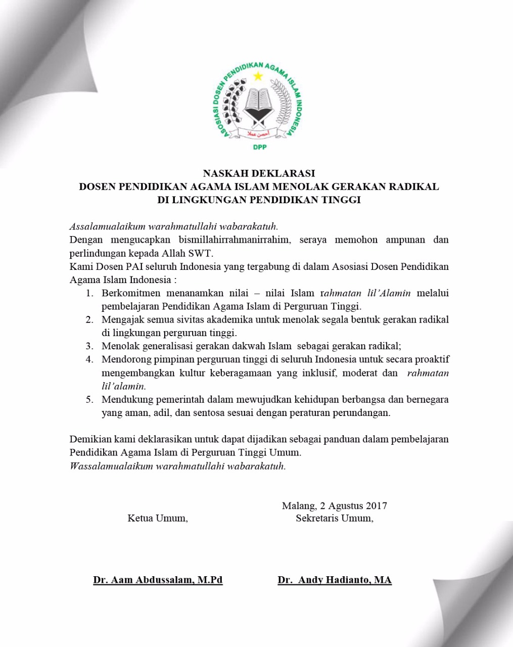 Manfaatkan Momen MTQ di UM, Dosen PAI se Indonesia Deklarasi Anti Radikal di Kampusredaktur2024-12-13T04:19:39+07:00August 4, 2017|